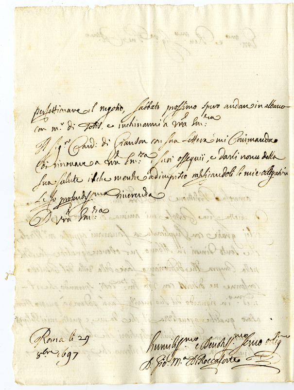 Lettera di Giovanni Maria Roccaforte (1697 ottobre 29)