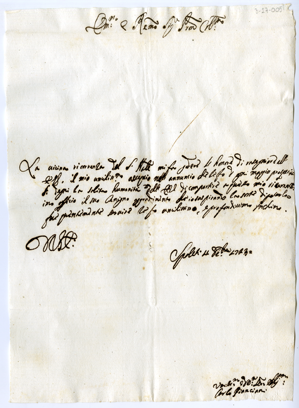Lettera di Carlo Pianciani al cardinale Annibale Albani (1723 dicembre 11)