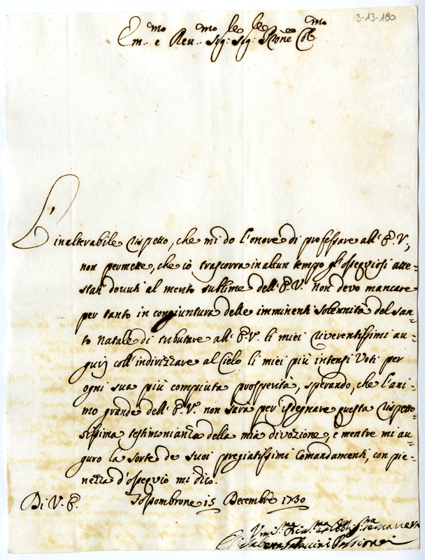 Lettera di Elisabetta Gabuccini Passionei al cardinale Annibale Albani (1730 dicembre 15)