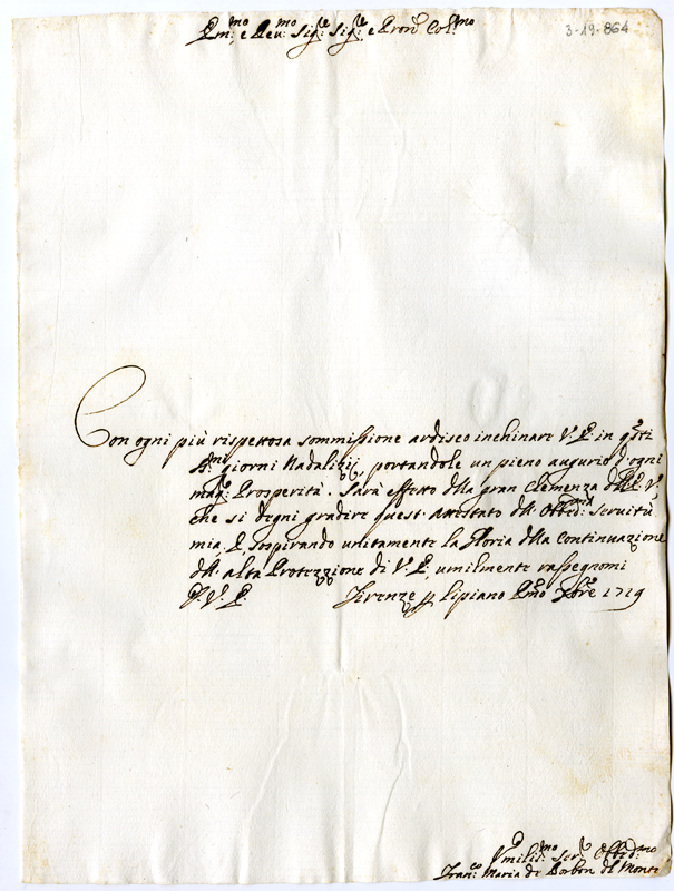 Lettera di Francesco Maria de Borbon del Monte ad Annibale Albani (1719 dicembre 1)