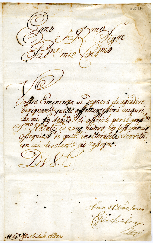 Lettera al cardinale Annibale Albani (1727)