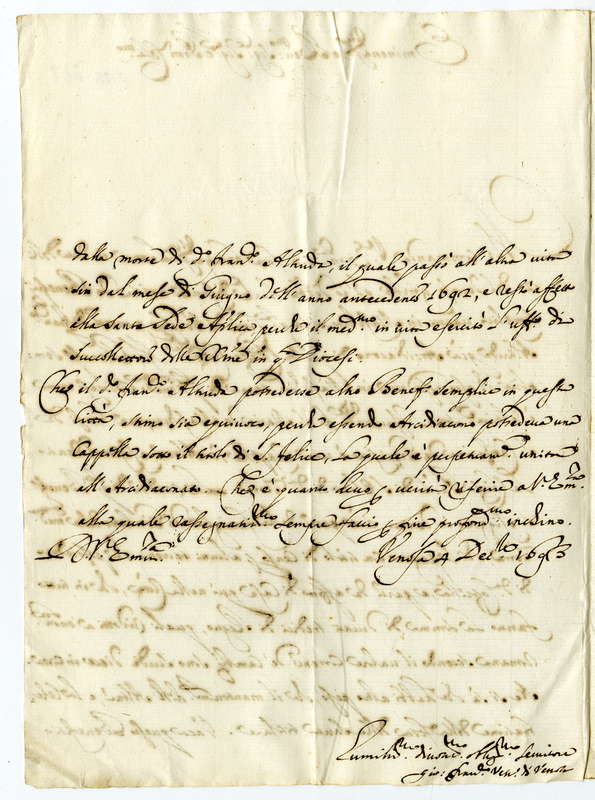 Lettera del Vescovo di Venosa a un Cardinale (1693 dicembre 4)