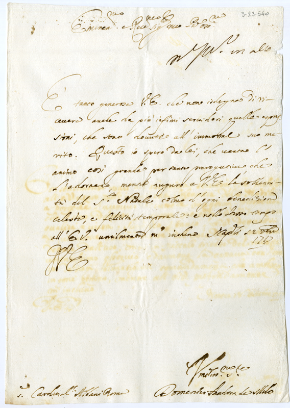 Lettera di Domenico Andrea de Milo al cardinale Annibale Albani (1717 dicembre 12)