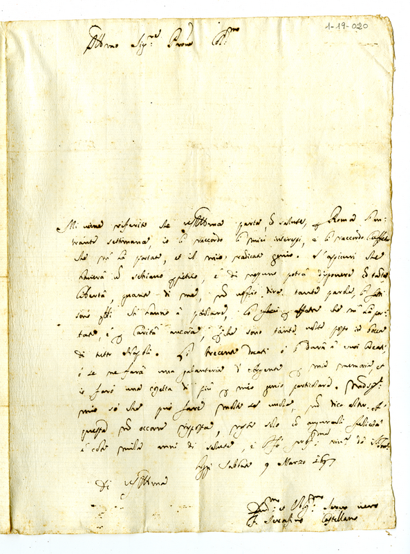Lettera di Serafino Castellano a Tommaso Maria Franza (1697 marzo 9)
