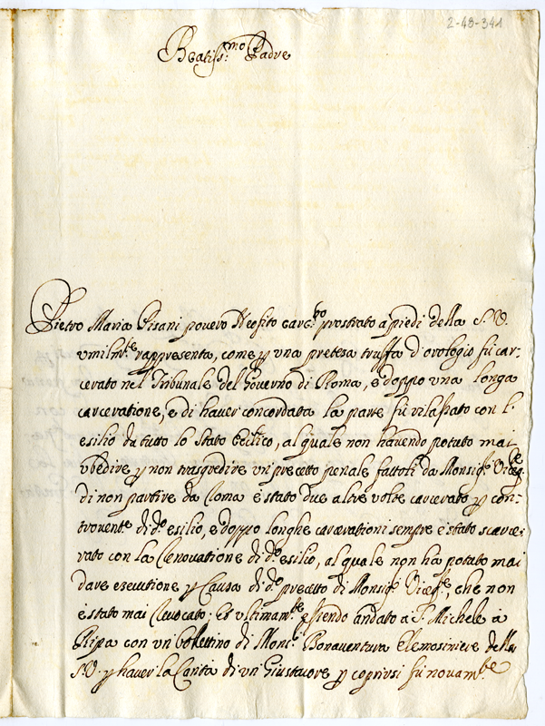 Lettera di Pietro Mario Pisani a papa Clemente XI (1700-1721)