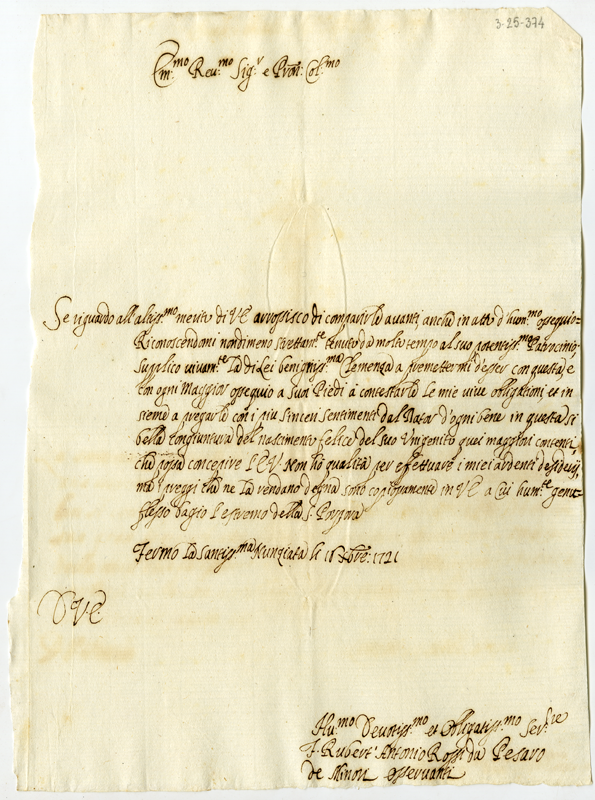 Lettera di Rubert'Antonio Rossi al cardinale Annibale Albani (1721 dicembre 16)