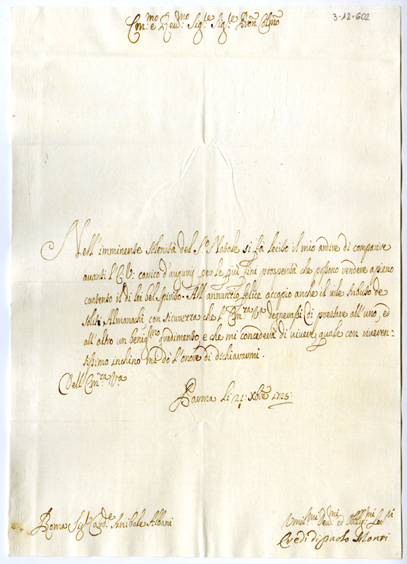Lettera degli eredi di Paolo Monti al cardinale Annibale Albani (1725 dicembre 21)