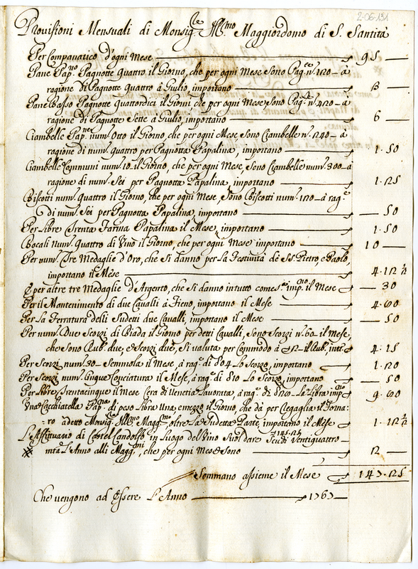 Provisioni mensuali di Monsignor Illustrissimo Maggiordomo di Sua Santità Clemente XI (1700-1721)