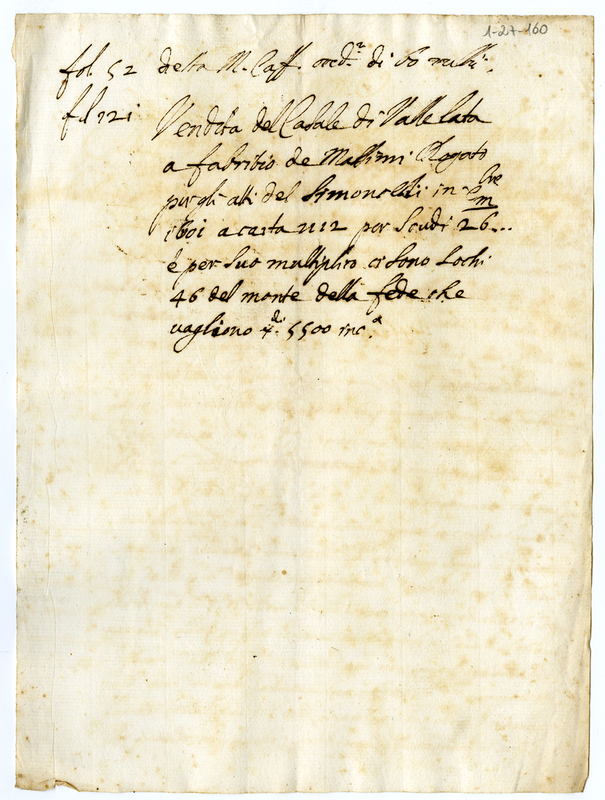 Note del casale di Vallelata da Fabrizio de Massimi (1600-1700)
