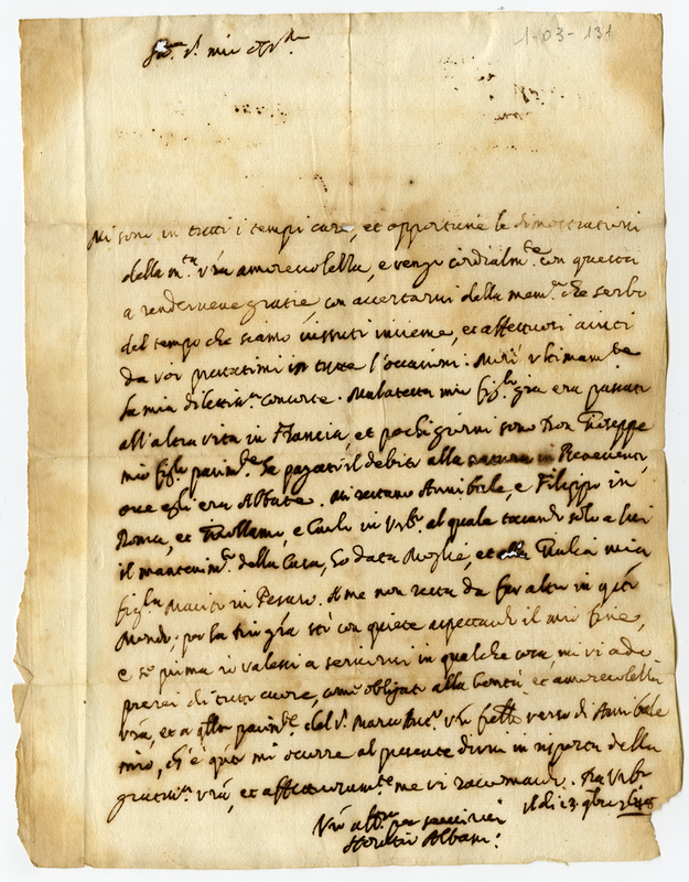 Scritture spettanti ad Orazio Albani Senatore di Roma, figlio di Annibale; ad Olimpia Staccoli sua moglie ed alli figli