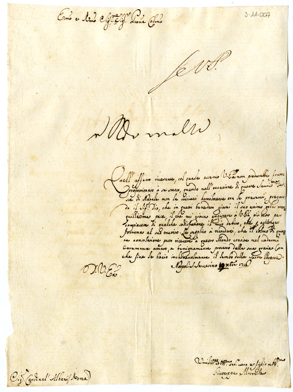 Lettera di Giuseppe Mormile al cardinale Annibale Albani (1716 dicembre 19)