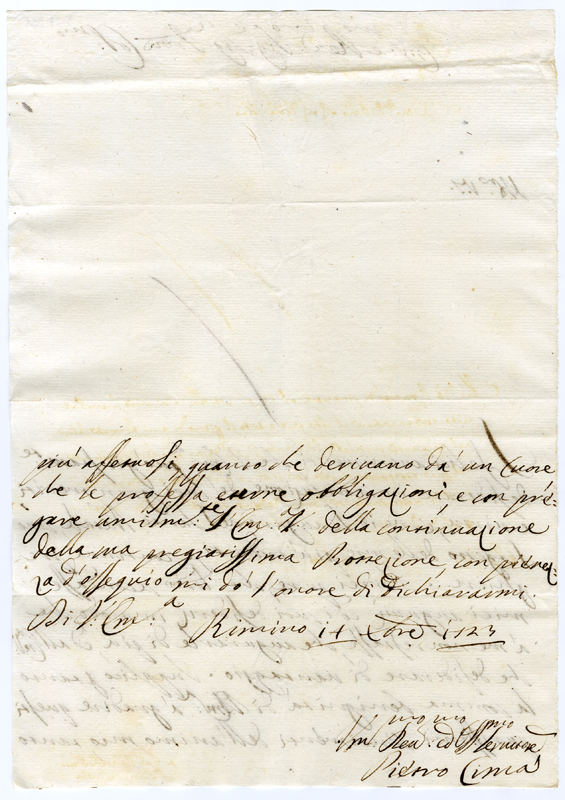 Lettera di Pietro Cima al cardinale Annibale Albani (1723 dicembre 14)