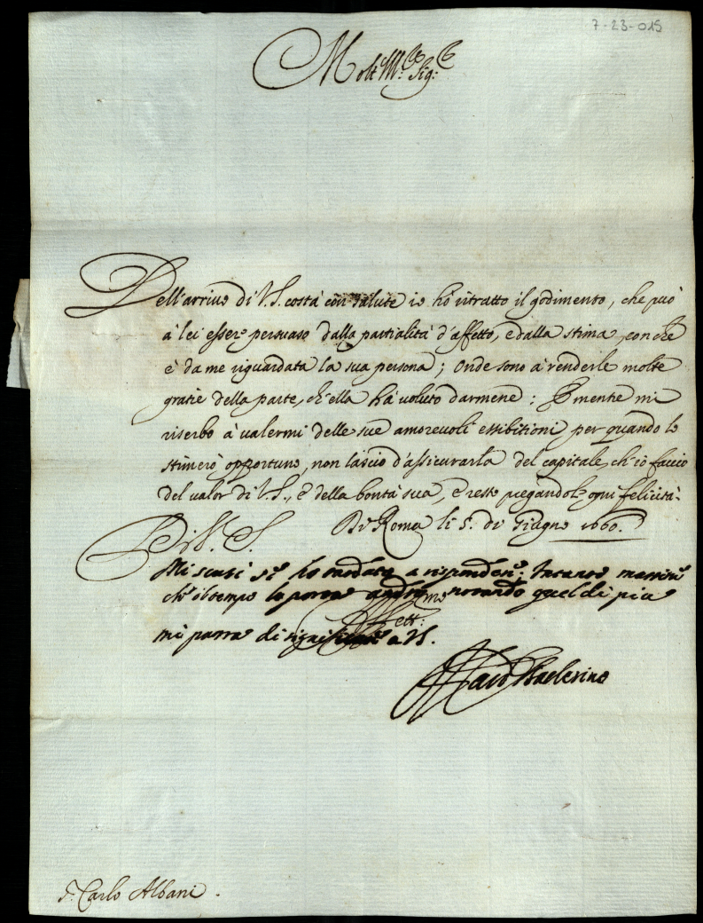 3. Lettere scritte da diversi, e specialmente da suoi signori fratelli, al signor Carlo Albani