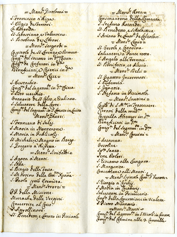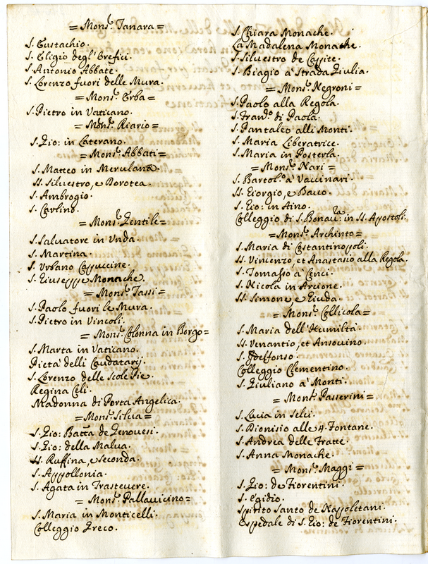 Nota delle tabelle delle chiese di Roma, che sin hora sono state disstribuite alli Signori Prelati per farne il confronto et averne la verificatione (1680-1689)