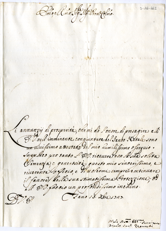 Lettera di Francesco Zagarelli al cardinale Annibale Albani (1727 dicembre 15)