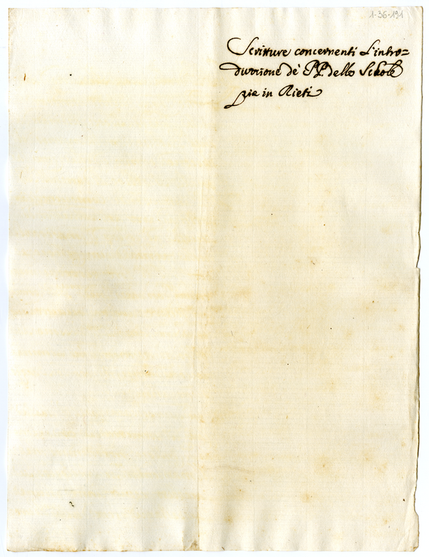 Scritture concernenti l'introduzione de Padri delle Scuole Pie in Rieti (1700-1721)