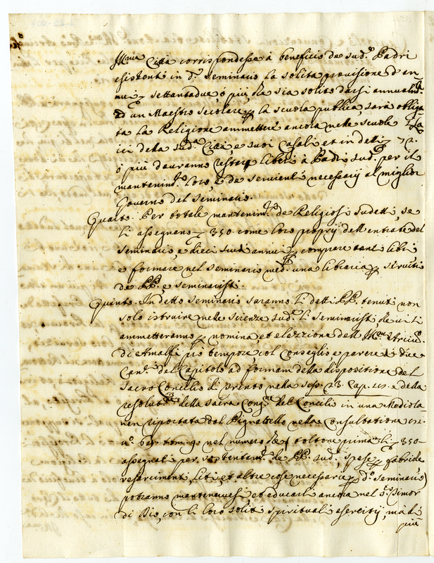 Capitoli e convenzioni stabilite tra Monsignor Illustrissimo e Reverendissimo Arcivescovo di Amalfi, et il Padre Reverendissimo Generale delle scuole Pie, per l'amministrazione e Governo di quel Seminario (1700-1721)