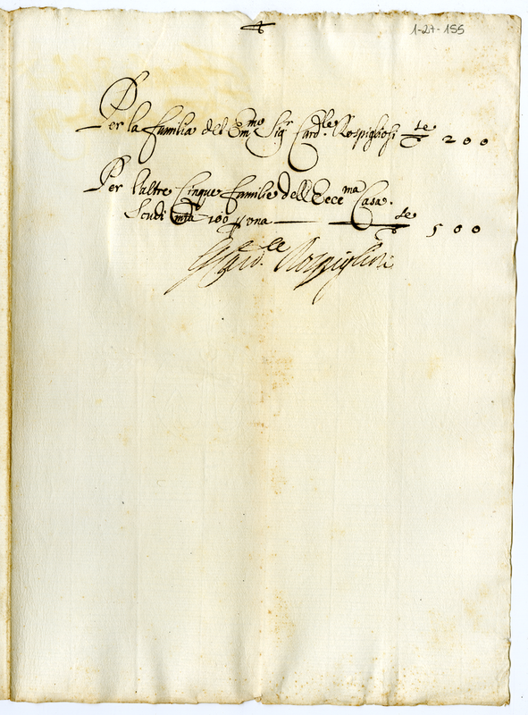 Per la famiglia dell'Eccellentissimo Signor Cardinale Rospigliosi, et altre famiglie sell'Eccellentissima Casa. 1667