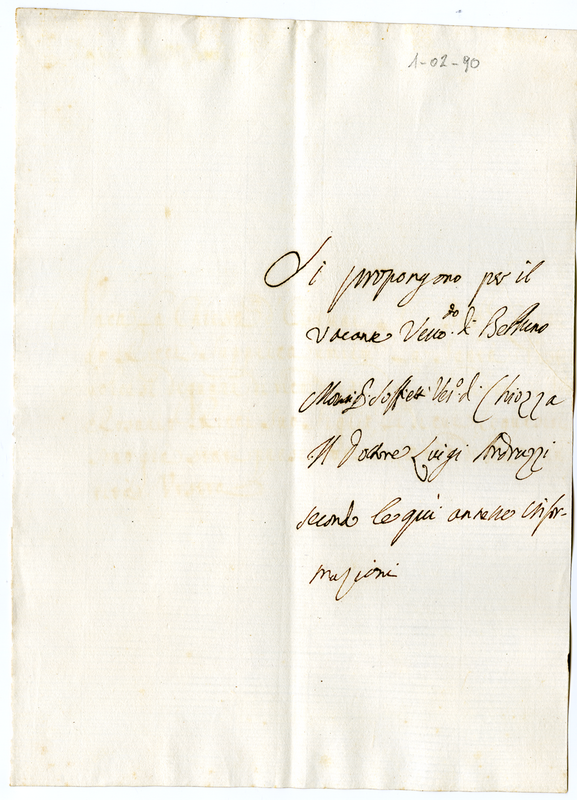 Si propongono per il vacante vescovato di Belluno monsignor Soffietti, vescovo di Chiozza, il dottore Luigi Ardruzzi secondo le qui annesse informazioni