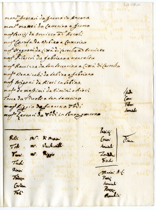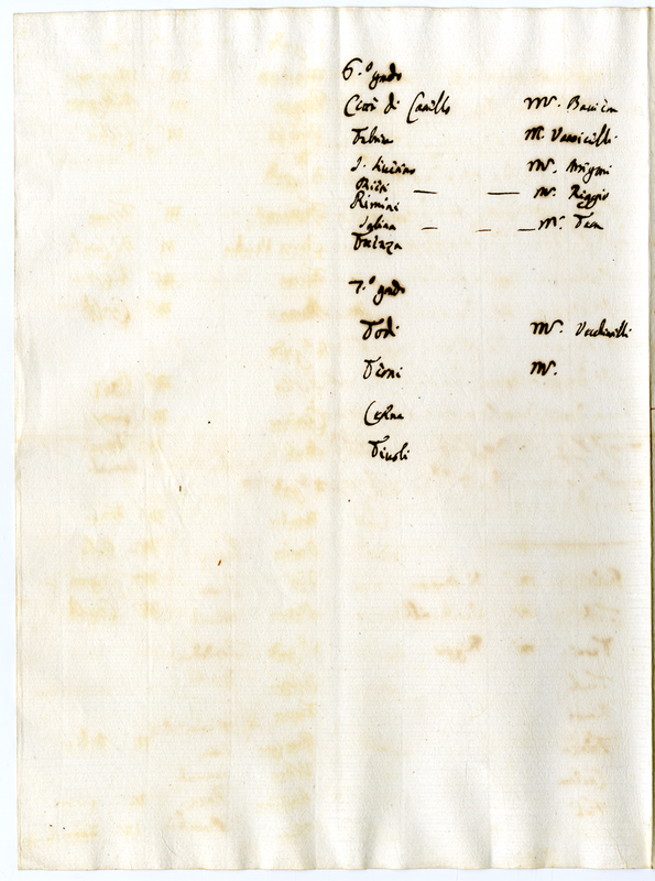 Elenco di località con i relativi Governatori scritto da Clemente XI (1700-1721)