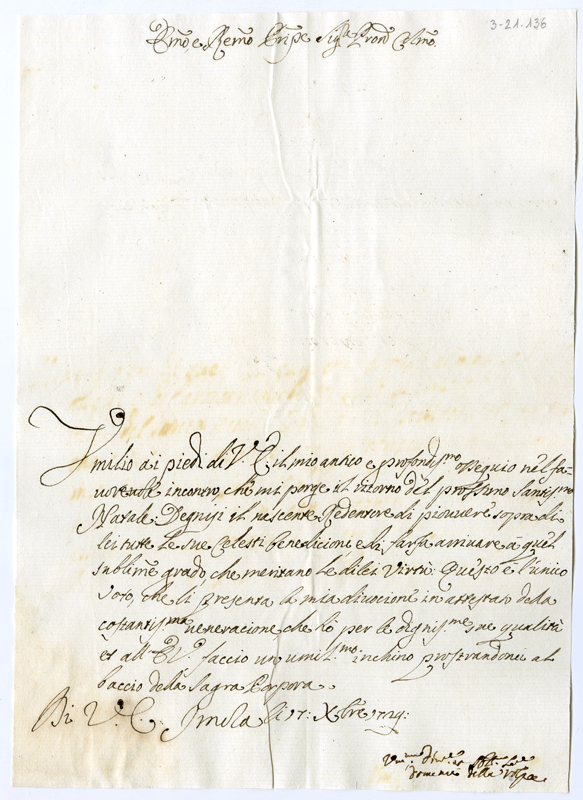 Lettera di Domenico della Volpe al cardinale Annibale Albani (1729 dicembre 17)