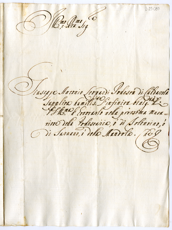 Lettera di Giuseppe Antonio Leopardi podestà di Caldarola a monsignor Martelli (1700-1721)