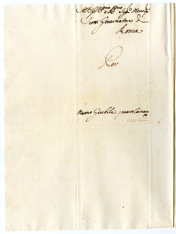 Lettera di Matteo Giubili a monsignor Scotti governatore di Roma (1700-1721)