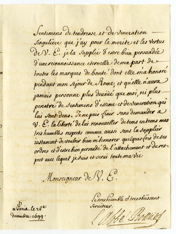Lettera dell'abate Bossuet a un Cardinale (1699 dicembre 26)