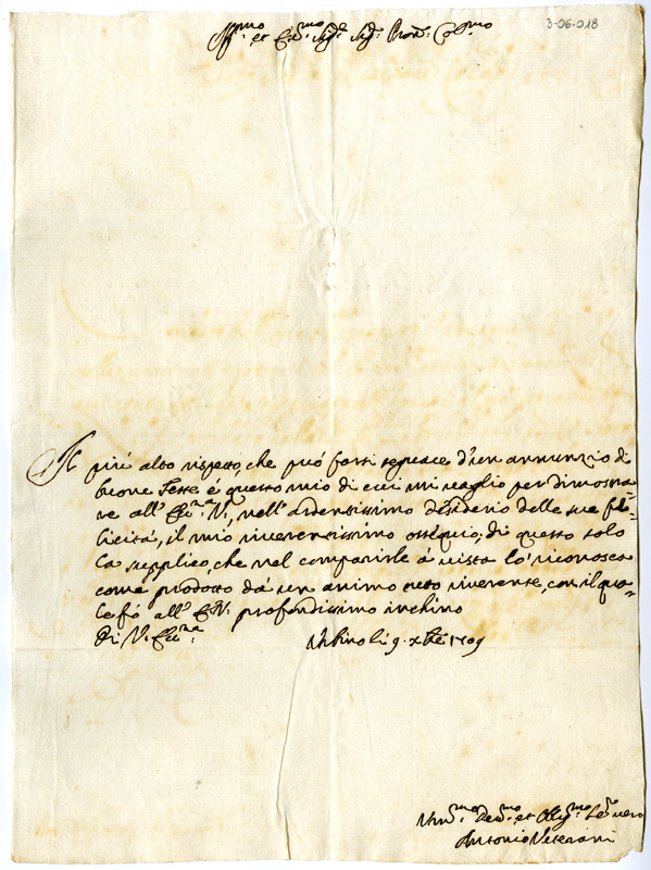Lettera di Antonio Veterani ad Annibale Albani (1709 dicembre 9)