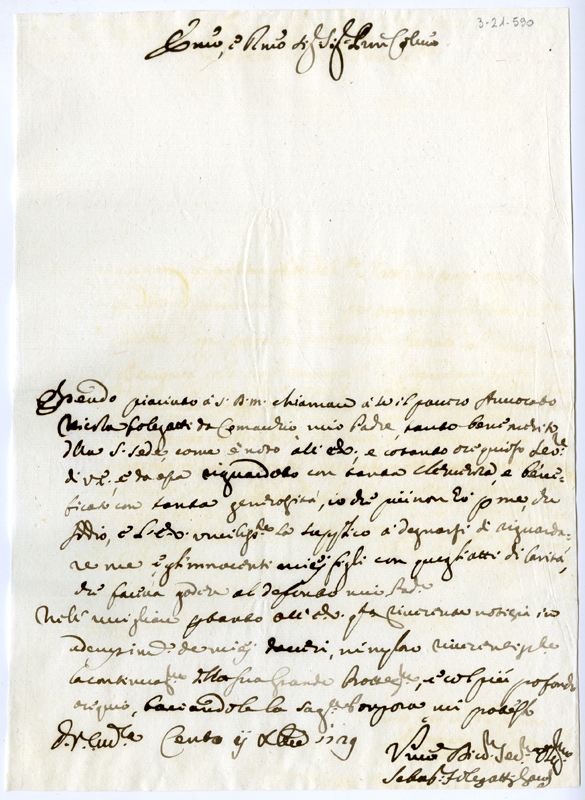 Lettera di Sebastiano Folegatti al cardinale Annibale Albani (1729 dicembre 11)