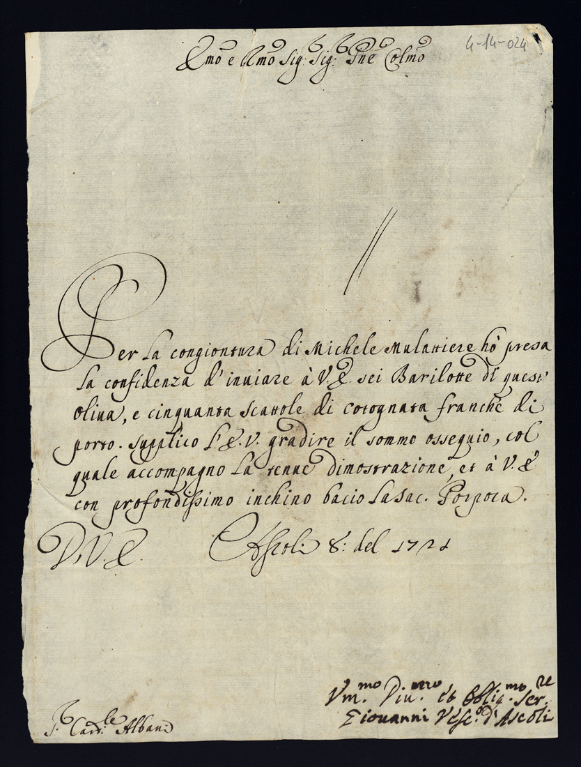 4. 1720. Gennaio. Lettere di complimento e di negozio. Semestre primo