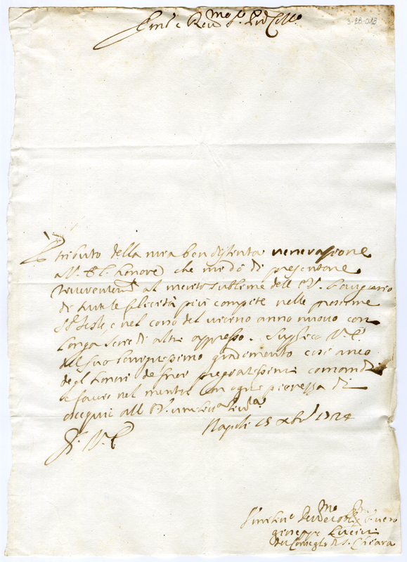 Lettera di Giuseppe Lucini al cardinale Annibale Albani (1724 dicembre 8)