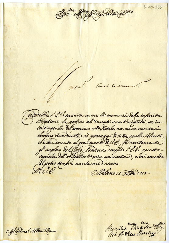 Lettera di Giovanni Battista Borella al cardinale Annibale Albani (1715 dicembre 11)