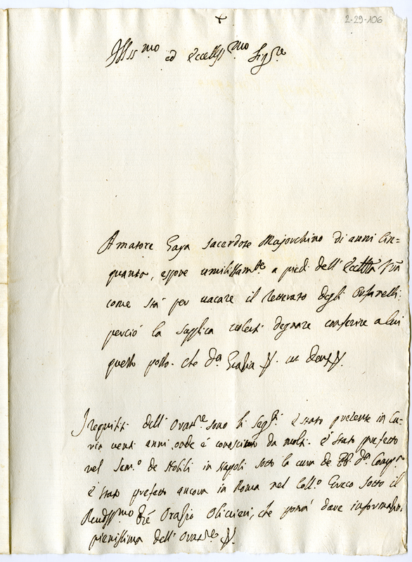 | dc.description | Chiede di ottenere il rettorato degli orfanelli che sta per vacare, presenta i suoi requisiti | |