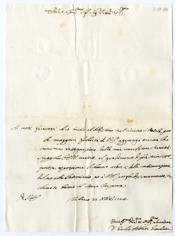 Lettera di don Giulio abbate Giovannini al cardinale Annibale Albani (1724 dicembre 22)