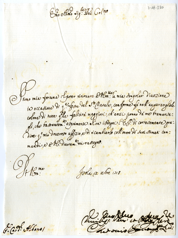 Lettera al cardinale Annibale Albani (1718 dicembre 10)