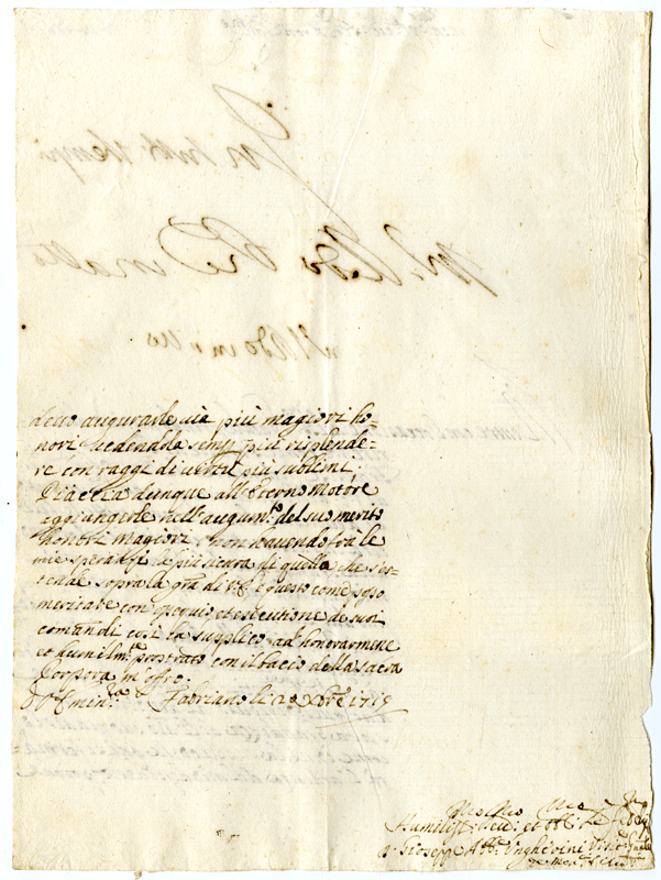 Lettera di don Giuseppe Ungherini abbate al cardinale Annibale Albani (1715 dicembre 20)