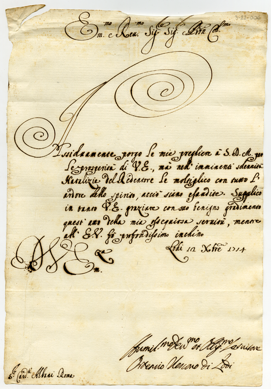 Lettera di Ortensio vescovo di Lodi al cardinale Annibale Albani (1714 dicembre 12)
