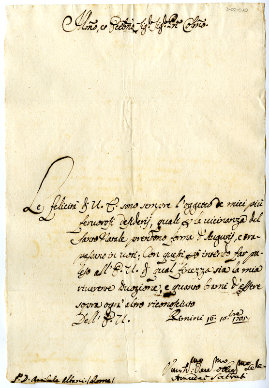 Lettera di Amedeo Sacrati ad Annibale Albani (1705 dicembre 16)