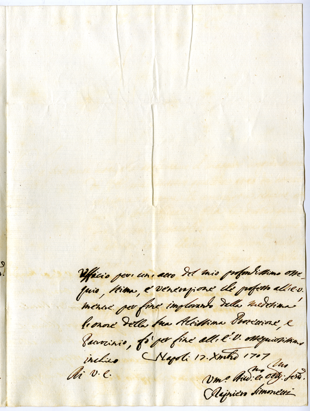 Lettera di Raniero Simonetti ad Annibale Albani (1707 dicembre 17)