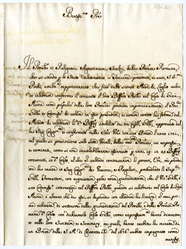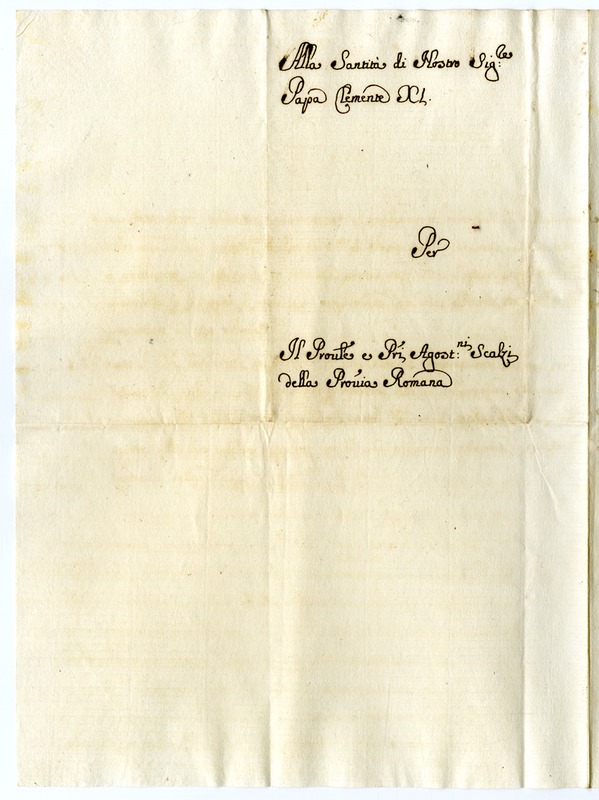 Lettera del provinciale e dei padri agostiniani scalzi della provincia romana a Clemente XI (1701-1721)