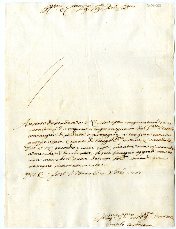 Lettera di Gentile Carbonara ad Annibale Albani (1707 dicembre 7)