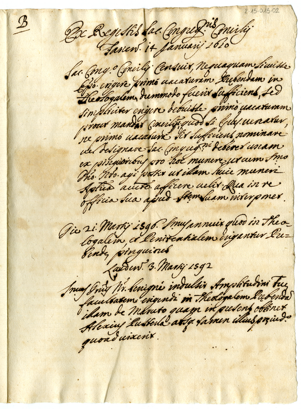 Trascrizione dal Regesto della Sacra Congregazione del Concilio 1610 gennaio 14