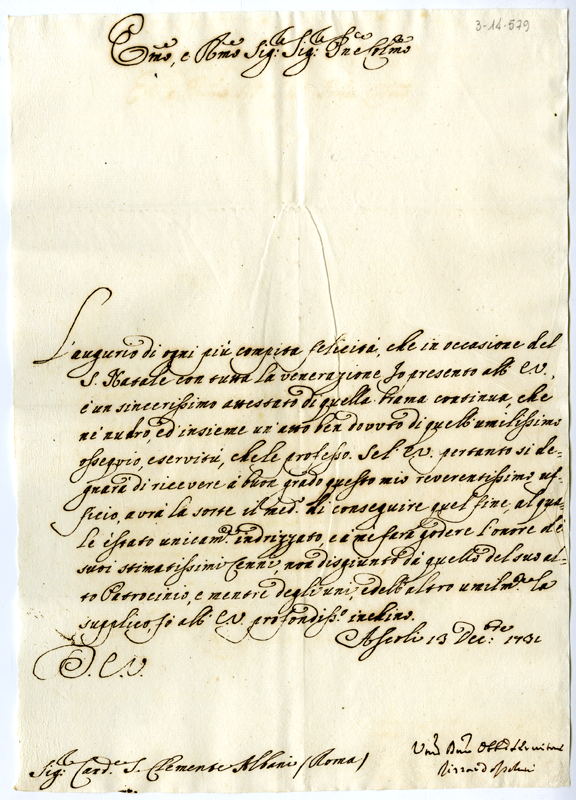 Lettera al cardinale Annibale Albani (1731 dicembre 13)