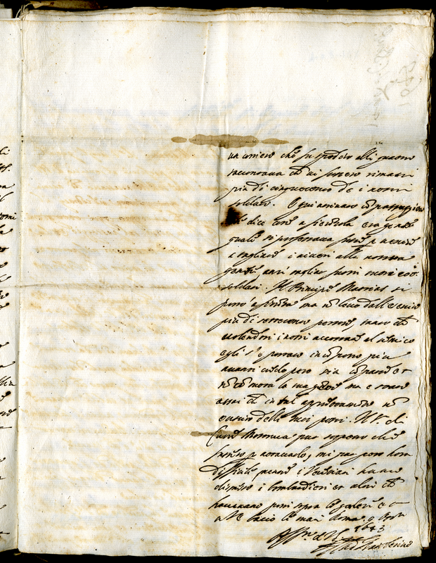 Lettera del cardinale Barberini Francesco senior a Malatesta Albani (1643 ottobre 9)