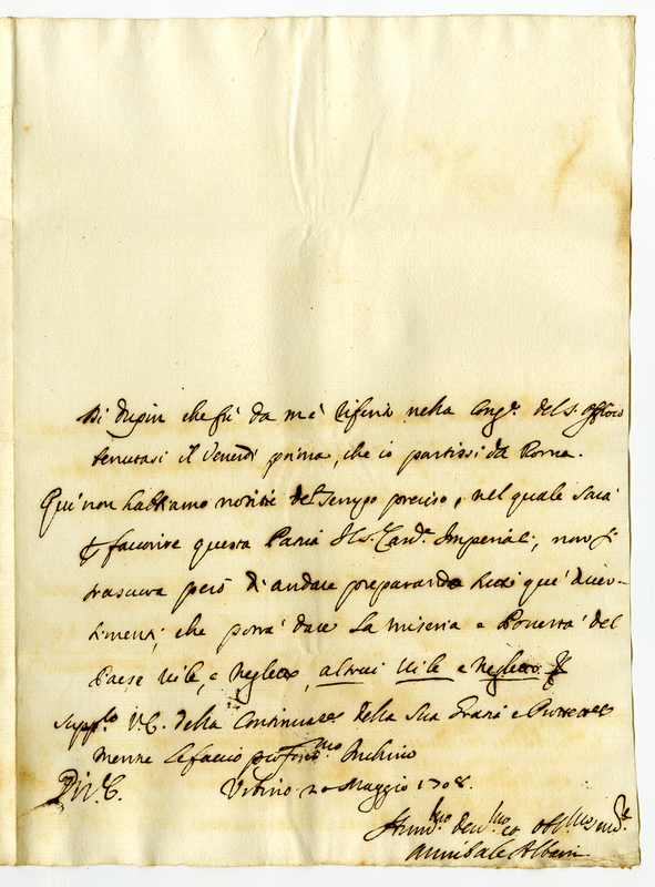 Lettera di Annibale Albani ad un cardinale (1708 maggio 20)