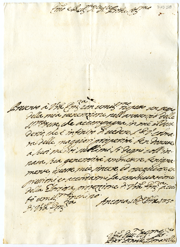 Lettera di Pier Gentile Bonarelli al cardinale Annibale Albani (1730 dicembre 16)