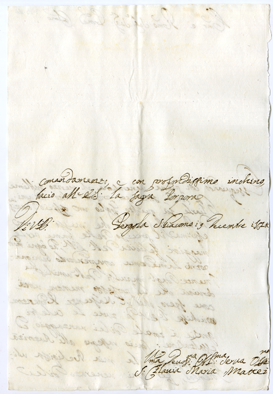 Lettera di suor Flavia Maria Mattei al cardinale Annibale Albani (1724 dicembre 19)