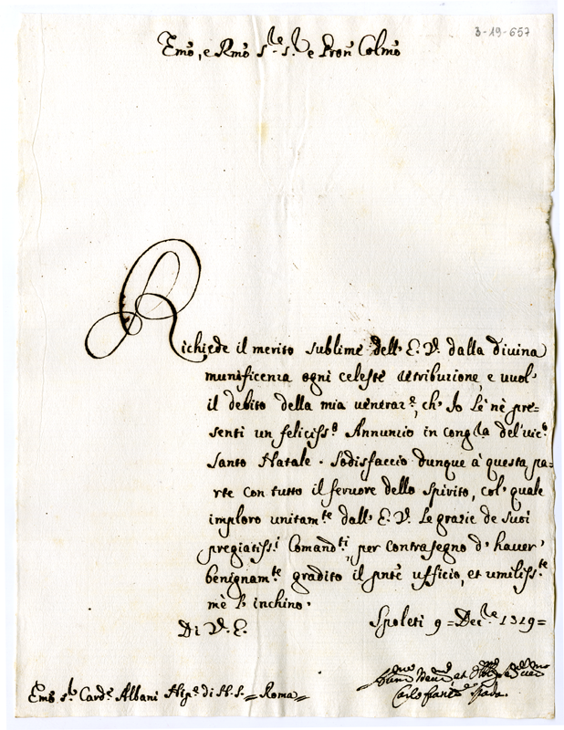 Lettera di Carlo Francesco Spada al cardinale Annibale Albani (1719 dicembre 9)