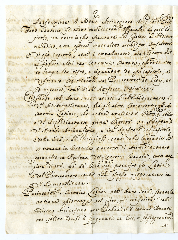Nota di Requisiti del Dottor Orazio Francesco Latini Patrizio delle città d'Otranto, e nativo della città di Napoli (1713 ca.)